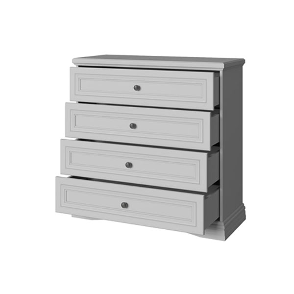 - Комод с четырьмя выдвижными ящиками в современном стиле предназначен для хранения одежды и личных вещей.