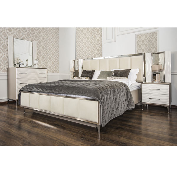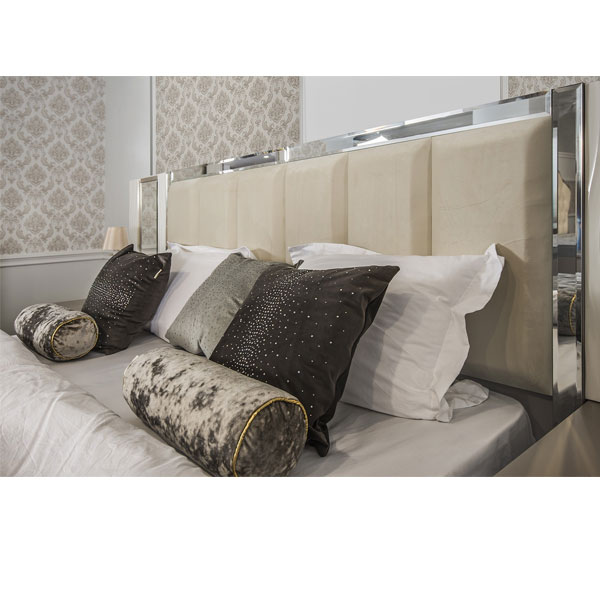 - Кровать Гравита с декоративными фацетированными зеркальными рамками на изголовье – делает ее центром притяжения.