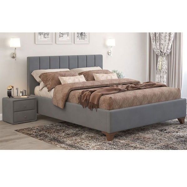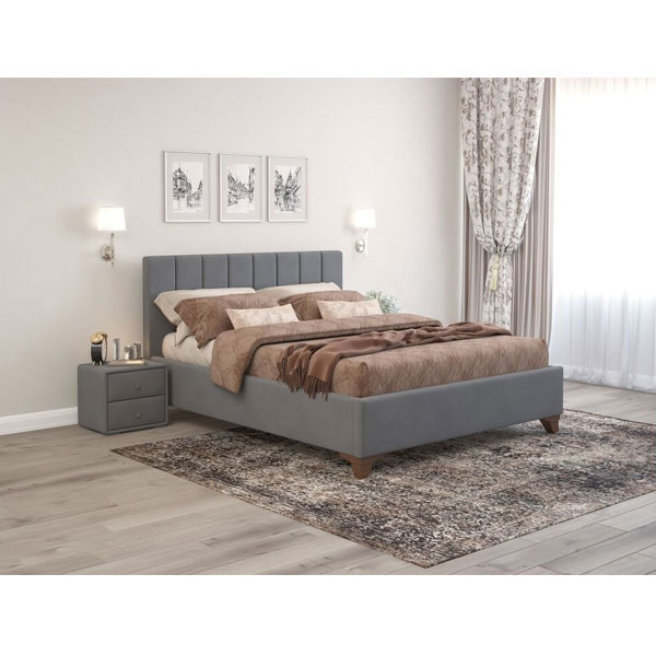 - Интерьерная кровать Оливия декорирована микровелюром серого цвета.