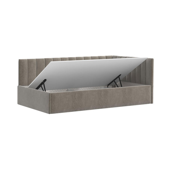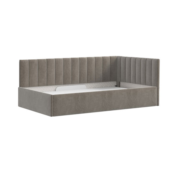 - Универсальная угловая кровать с мягким изголовьем: устанавливается на левую или правую сторону.