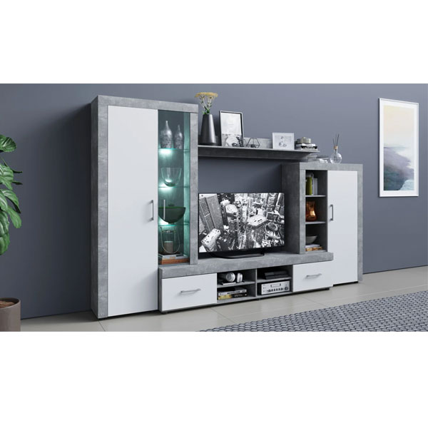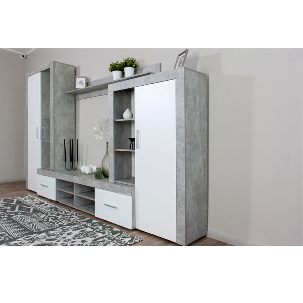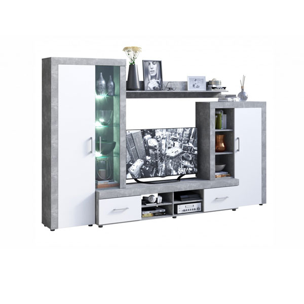 - Стенка Джерси – светлая, компактная и функциональная. Беспроигрышный вариант для небольших комнат.