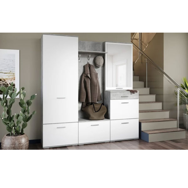 - Стильное сочетание светлых оттенков "Ателье светлый" и "Белого" зрительно увеличит размер прихожей.