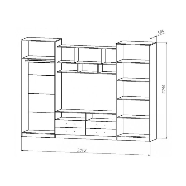 Ширина (см) 304.2 Глубина (см) 50.4 Высота (см) 220 Материал изготовления ЛДСП Основной поставщик ЛЮБИМЫЙ ИНТЕРЬЕР ООО Вес 230 кг Страна происхождения РФ