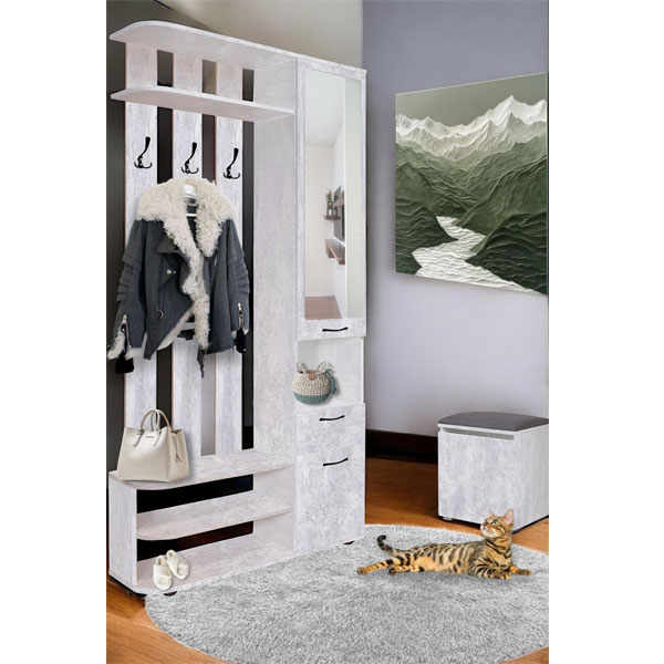 - Простая и компактная прихожая вместительна и функциональна, позволит разместить все необходимые вещи: обувь, верхнюю одежду, головные уборы и различные мелкие вещи.