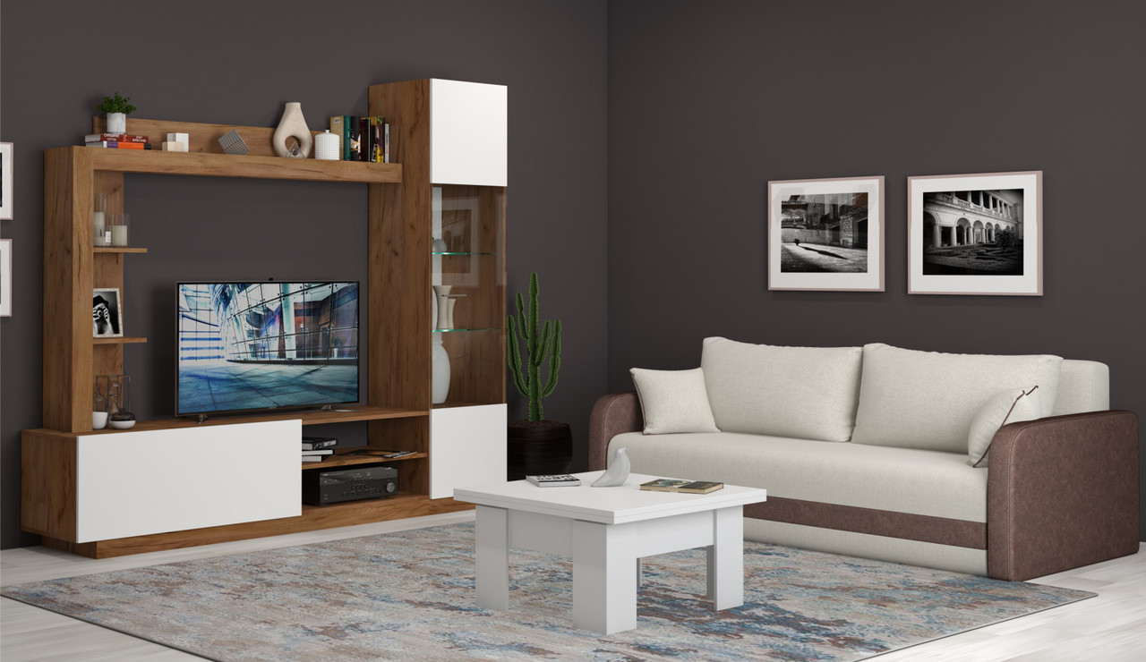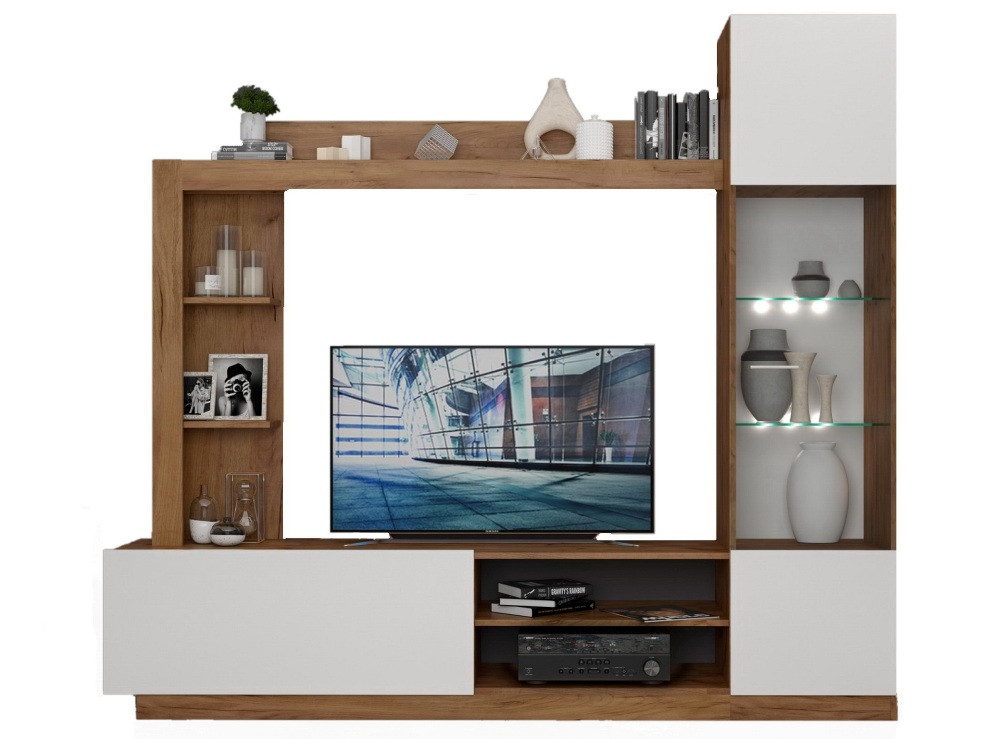 Компактная стенка Флекс в европейском стиле совмещает в себе все современные тренды: ламинированная плита в цвете крафт золотой из нового поколения декоров Кроношпан (Австрия), рисунок и рельеф натурального дерева, утолщённые линии корпуса, скрытая крепежная фурнитура (без заглушек на боковинах) и выступающие фасады, позволяющие обойтись без ручек. Стенка Флэкс отлично сочетается с другой мебелью, отличающейся по стилю и цвету. Для этого достаточно добавить белый или теплый древесный цвет в одной или в паре деталей комнаты — например, в раме для картины или в ножках стульев. Микс – это новый тренд нашего времени в интерьере, сейчас модно перемешивать цвета, фактуры, стили, формы и размеры. Это делает интерьер более индивидуальным и интересным. Выполнена из экологичных материалов