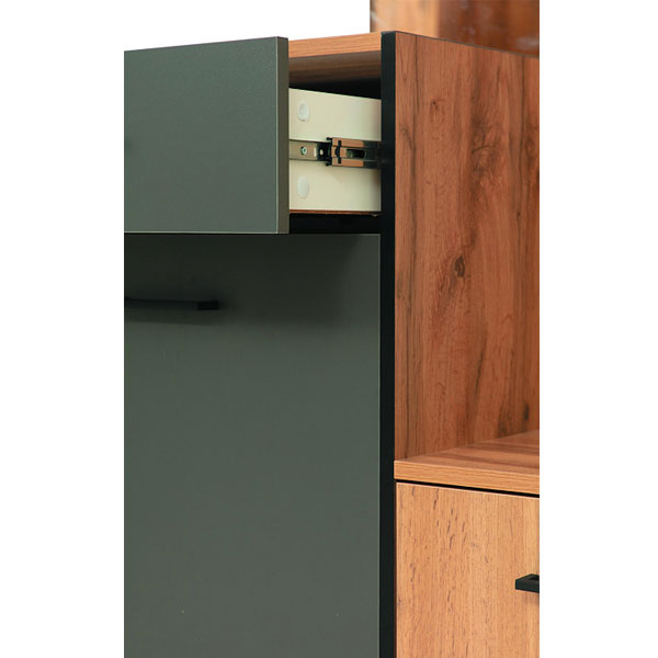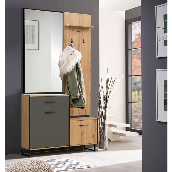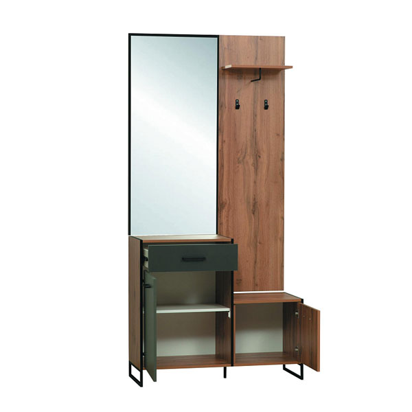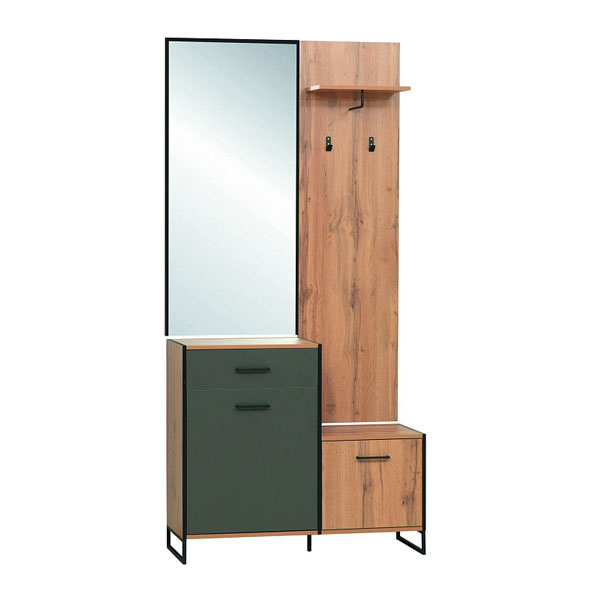 - Цвет: дуб вотан/белый/диамант серый/металл черный/зеркало.