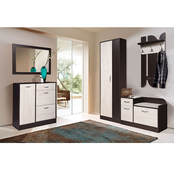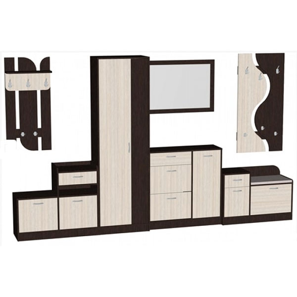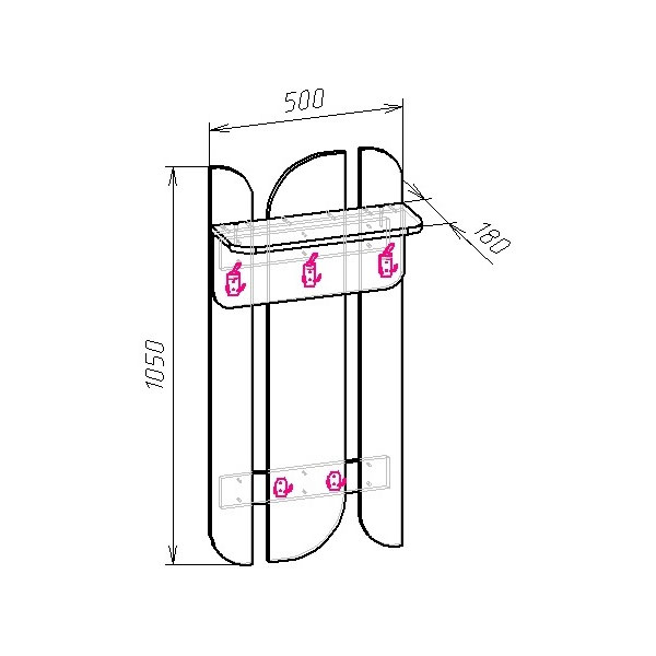 - Вешалка оборудована полкой для головных уборов, тремя большими крючками для одежды и двумя малыми дополнительными крючками для сумок и зонтов.
