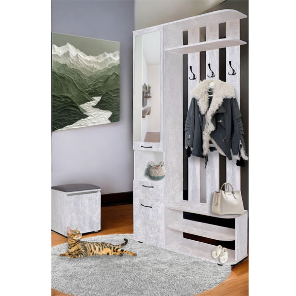 - Простая и компактная прихожая вместительна и функциональна, позволит разместить все необходимые вещи: обувь, верхнюю одежду, головные уборы и различные мелкие вещи.