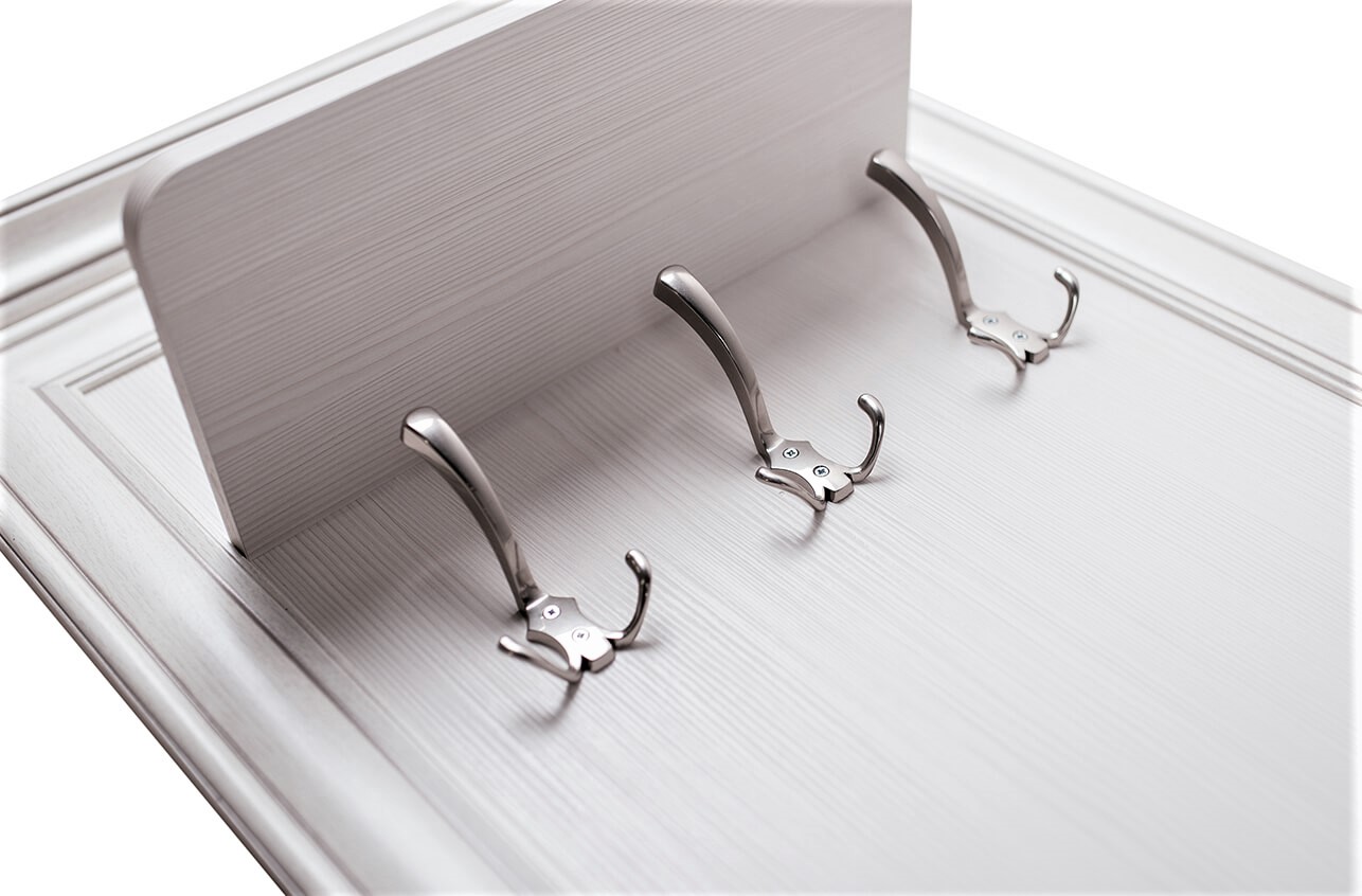 - Сочетание светлого оттенка с древесной структурой, нежных фасадов, обрамленных изящными планками с патиной и качественных металлических ручек создадут атмосферу тепла и уюта, а возможность использования подсветки делает эту коллекцию особенно привлекательной.