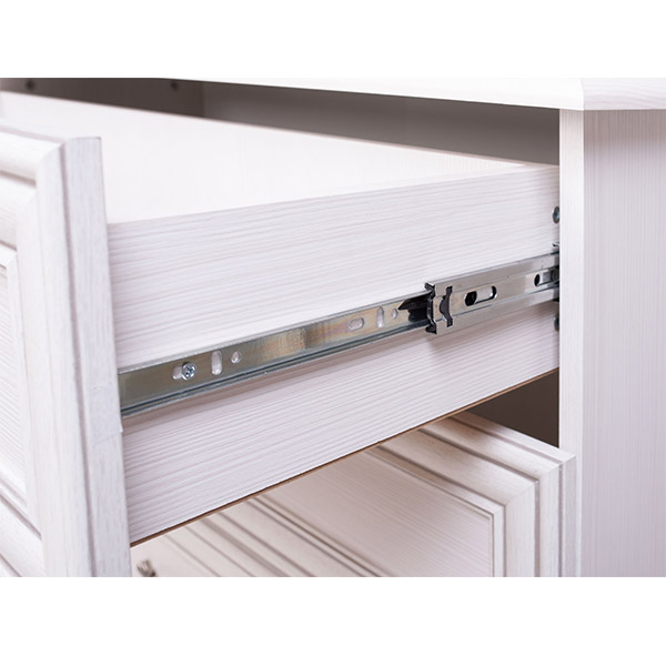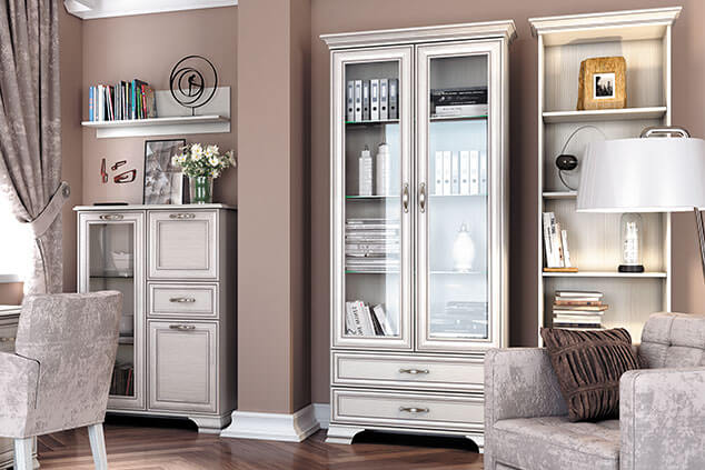 - Сочетание светлого оттенка с древесной структурой, нежных фасадов, обрамленных изящными планками с патиной и качественных металлических ручек создадут атмосферу тепла и уюта, а возможность использования подсветки делает эту коллекцию особенно привлекательной.