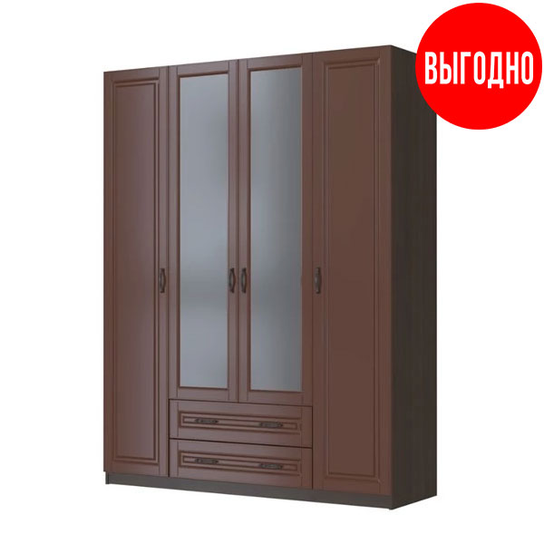 - Шкаф имеет четыре распашные двери, две центральных двери с зеркалом.