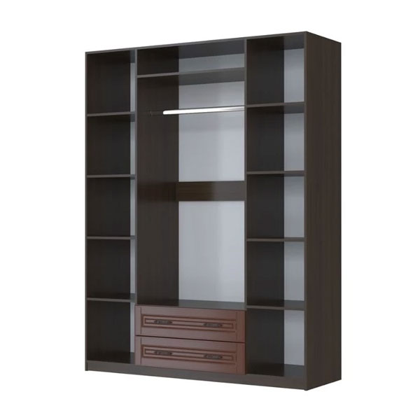 - Внутреннее наполнение шкафа: два отделения с четырьмя полками для белья, отделение со штангой для вешалок.