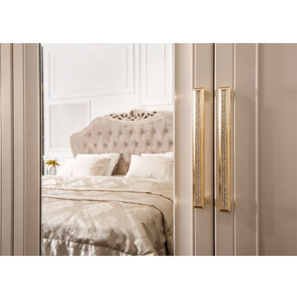 - Дверцы шкафа оснащены оригинальными золотыми ручками со стразами.