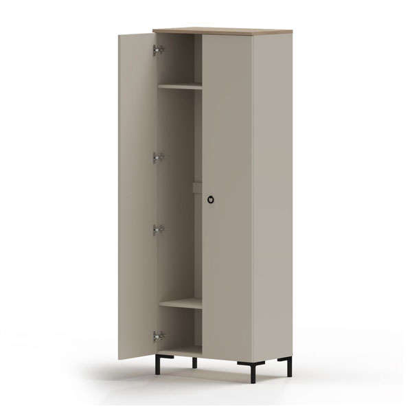 - За 2 распашными дверями расположена выдвижная металлическая штанга для одежды и 2 вместительные полки.