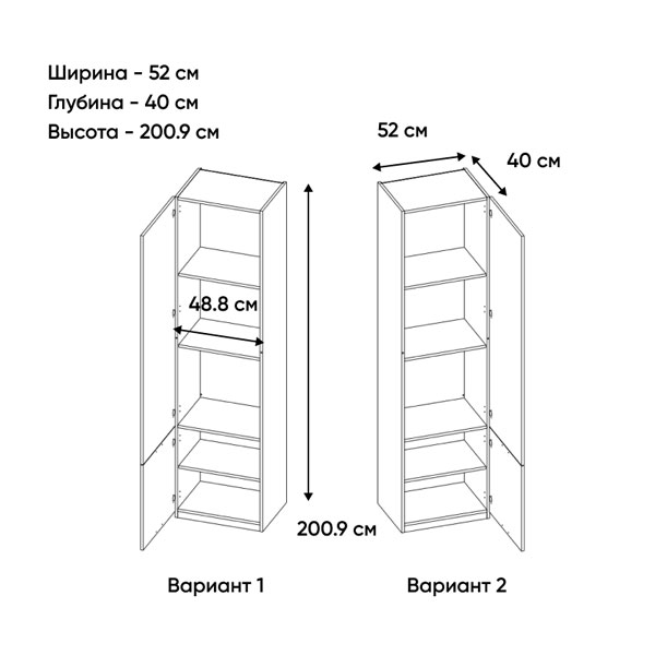 Ширина (см) 52 Глубина (см) 40 Высота (см) 200.9 Материал изготовления ЛДСП Основной поставщик АНРЭКС ИООО Вес 45,16 кг Страна происхождения РБ