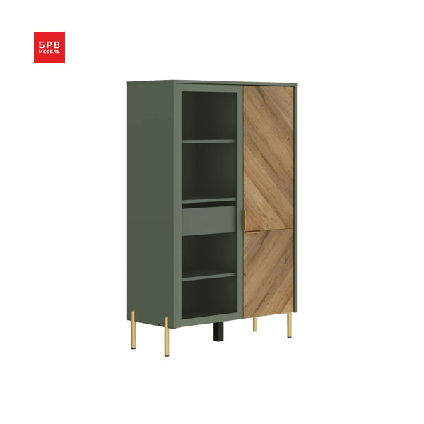 - Шкаф оснащен шлифованным стеклом, что придает ему изысканный вид и позволяет вам выставить на показ любимые вещи. Металлические опоры обеспечивают надежность и устойчивость конструкции.