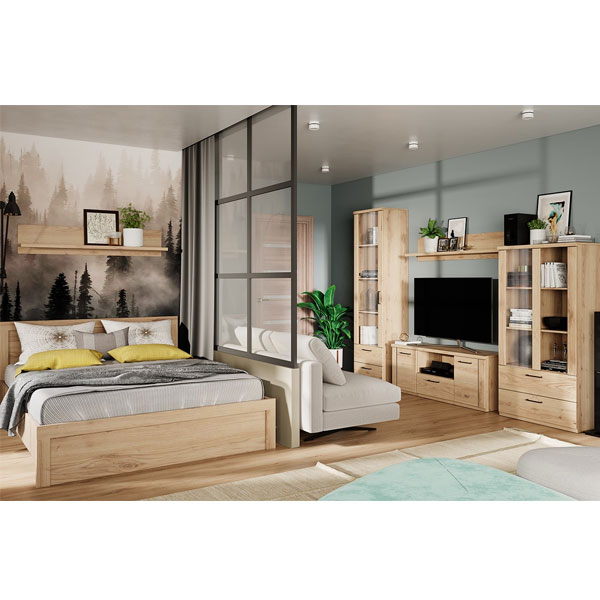 - Шкаф с витриной 1V2S3N Doorset выполнен в цвете дуб наварра.