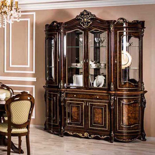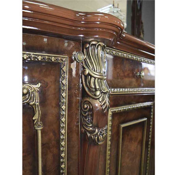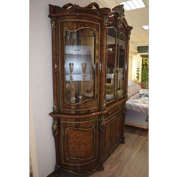 - Сервант декорирован балясинами, роскошной лепкой и фрезеровкой с золотой патиной.