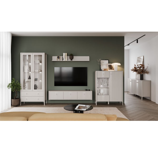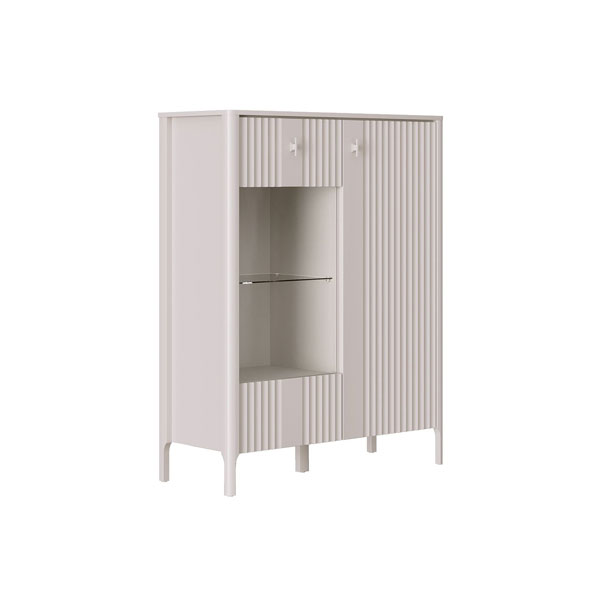 - Оснащен высокими изящными ножками, что придает ему визуальную легкость, предусмотрено бесшумное закрывание дверей.