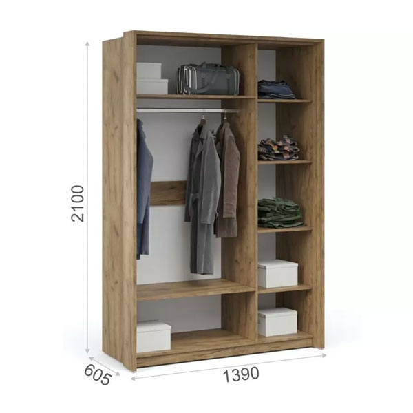 - Включает в себя вместительные полки и отделение со штангой, что позволяет создать систему для хранения вещей различного назначения.