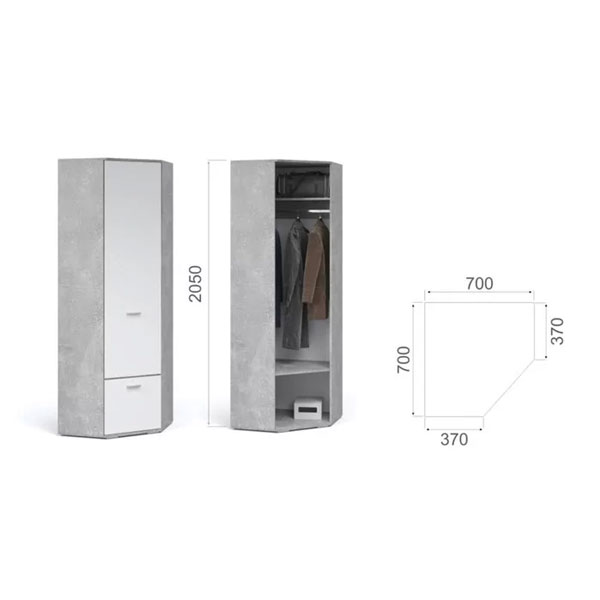 - Шкаф позволяет рационально использовать пространство и будет хорошо смотреться даже в небольшой комнате, служит связующим звеном для составления угловой системы хранения.