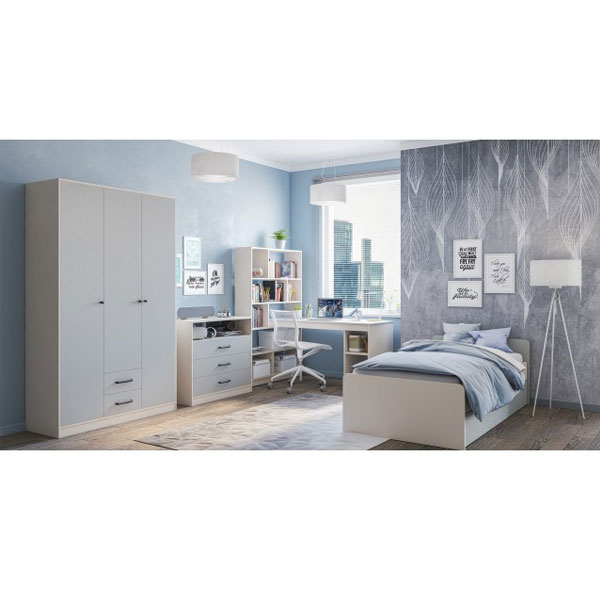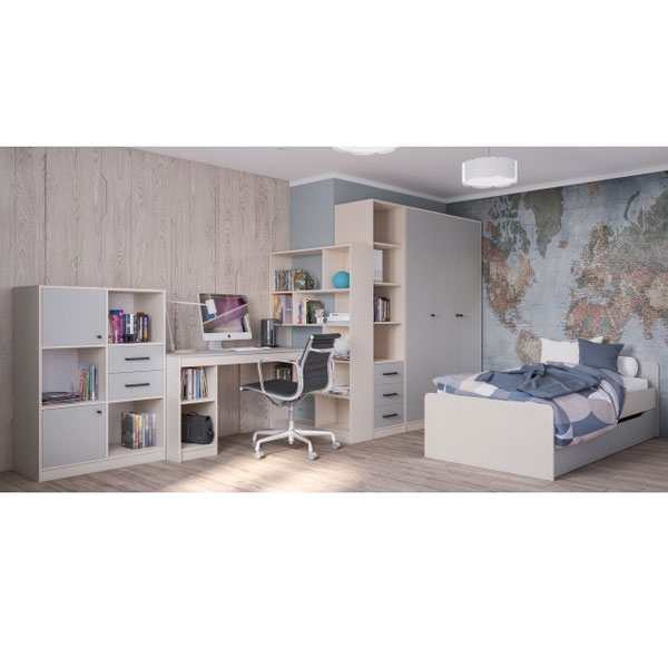 - Выполнит роль перегородки между двумя письменными столами. Поможет разделить комнату на зоны, отделив место для сна от рабочего или игрового пространства.