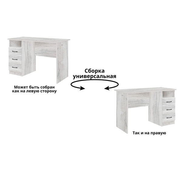 - Исполнение стола универсальное, то есть тумба может располагаться, как с левой, так и с правой стороны.