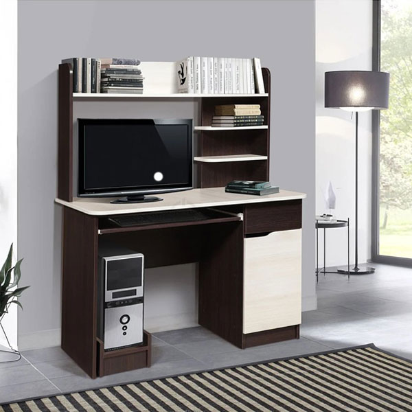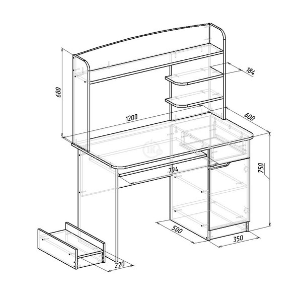 - При небольших размерах этот стол очень функционален: наличие выдвижного ящика и полок дает возможность разместить многочисленные документы, папки и книги.