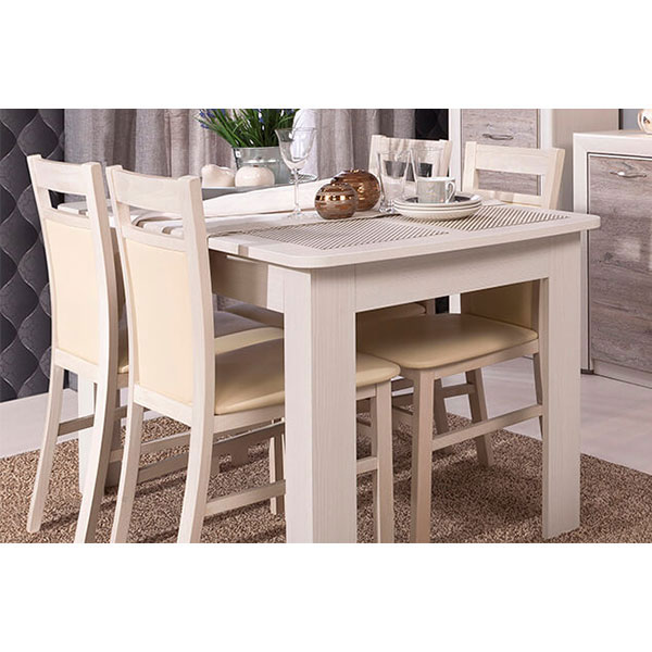 - Раздвижной стол Olivia (Оливия) в цвете «вудлайн кремовый» — это функциональная модель, сочетающая светлый древесный оттенок и строгие линии.