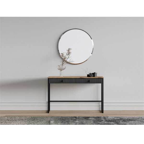 - Фасады ящиков-плита МДФ с фрезеровкой, изящные черные металлические ножки, металлические черные ручки.