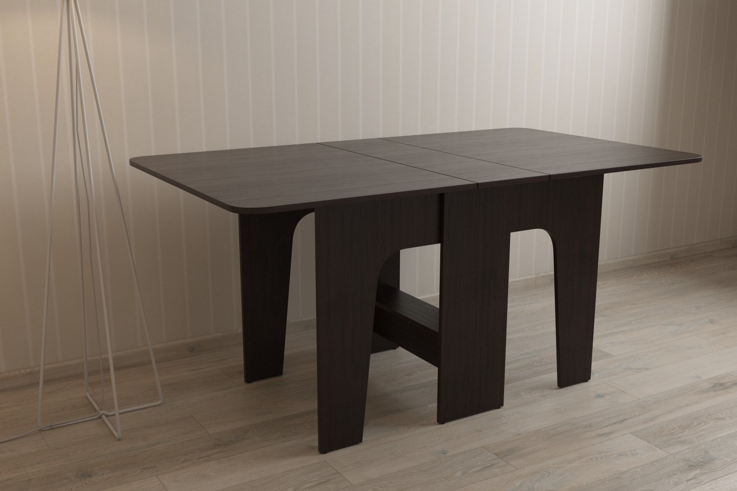 Такой стол выделяется своей функциональностью, ведь он может быть применен и как тумба, и как полномасштабный стол для приема гостей.