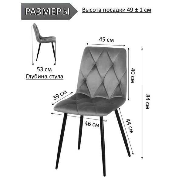 Ширина (см) 46 Глубина (см) 53 Высота (см) 84 Материал изготовления Металл Материал обивки Велюр Основной поставщик ЛЮБИМЫЙ ИНТЕРЬЕР ООО Вес 5,10 кг Страна происхождения РФ