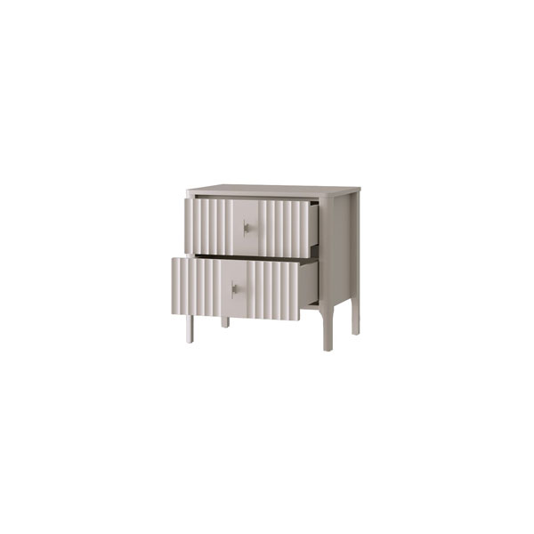 - 2 выдвижных ящика на направляющих скрытого монтажа частичного выдвижения плавного закрывания с рифлеными фасадами из МДФ, бесшумное закрывание.