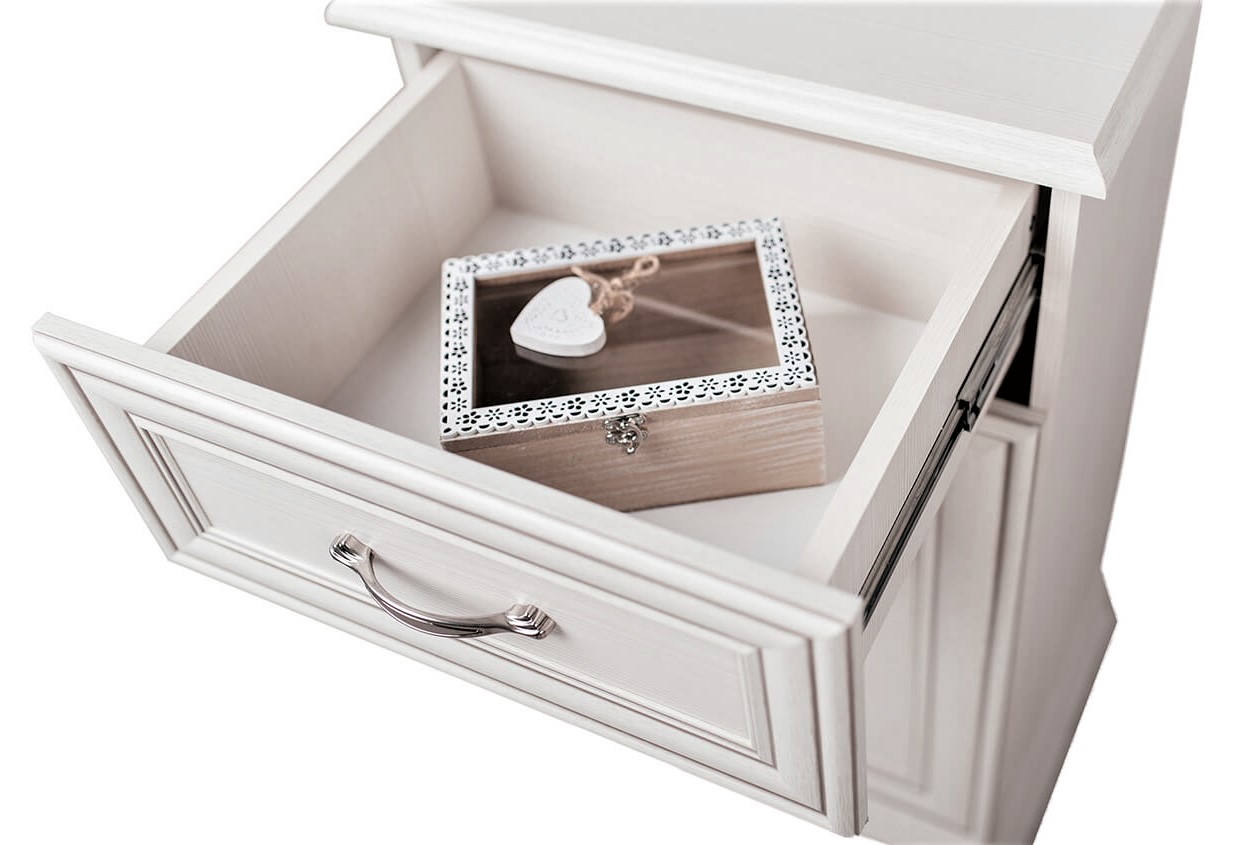 - Сочетание светлого оттенка с древесной структурой, нежных фасадов, обрамленных изящными планками с патиной и качественных металлических ручек создадут атмосферу тепла и уюта, а возможность использования подсветки делает эту коллекцию особенно привлекательной.