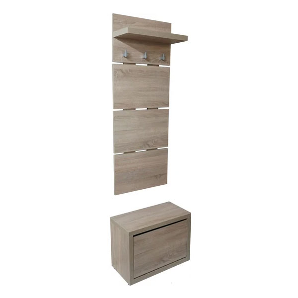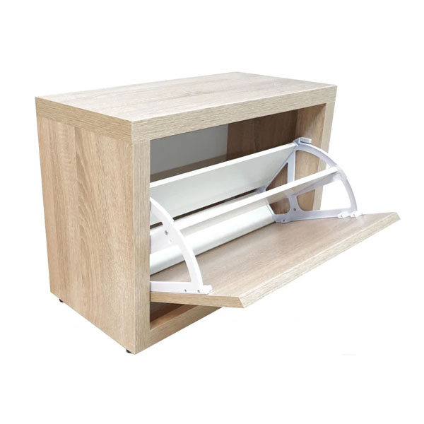 - Тумба для обуви Анрат "Элана" имеет одно откидное отделение для хранения обуви, за дверью фасада обувницы расположено поворотное устройство под обувь, образующее при открывании две ниши для хранения обуви.