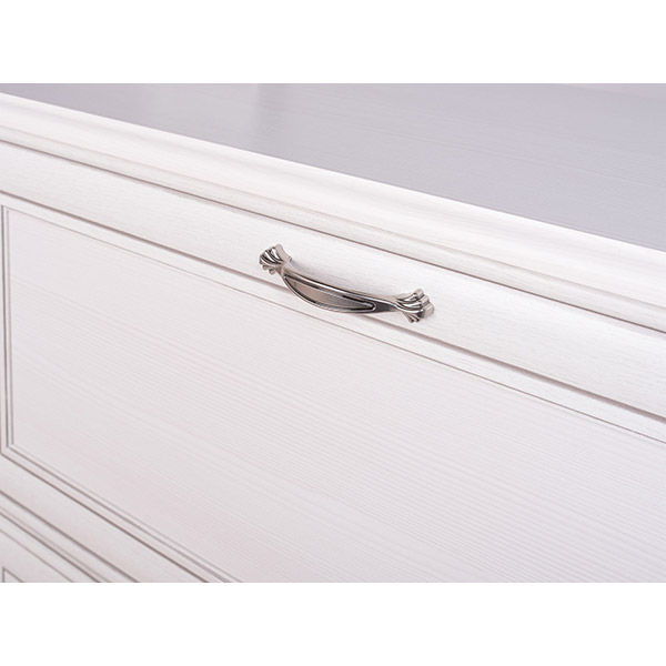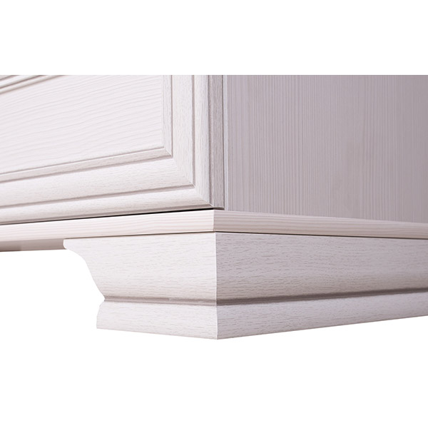 - Сочетание светлого оттенка с древесной структурой, нежных фасадов, обрамленных изящными планками с патиной и качественных металлических ручек создадут атмосферу тепла и уюта, а возможность использования подсветки делает эту коллекцию особенно привлекательной.