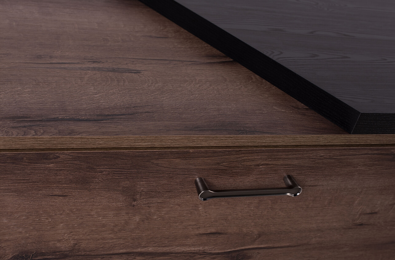 - Эта "многомерность" и уверенность были достигнты благодаря умелому сочетанию дуба монастырского и части фасадов, поддерживаемых в черном цвете.