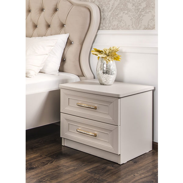 - Лаконичная прикроватная тумба Мокко выполнена в классическом стиле с двумя выдвижными ящичками.
