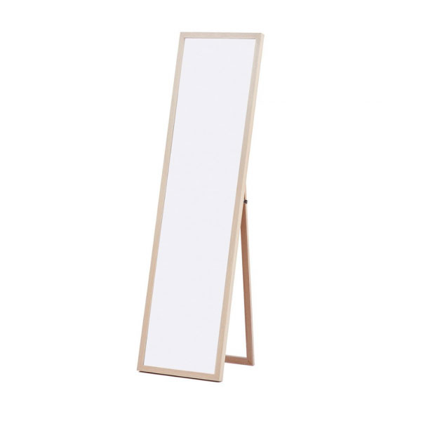 - Напольное зеркало из массива сосны с лаковым покрытием, которое подчеркивает натуральную текстуру и защищает дерево от повреждений.