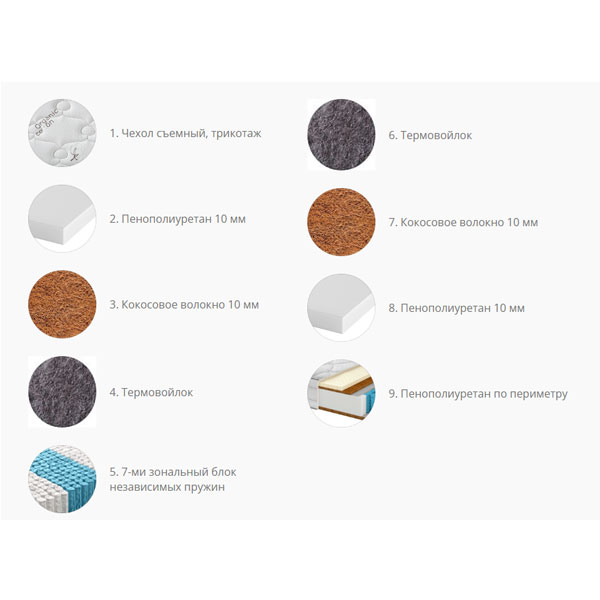- Материал: пенополиуретан, кокосовое волокно, термовойлок.