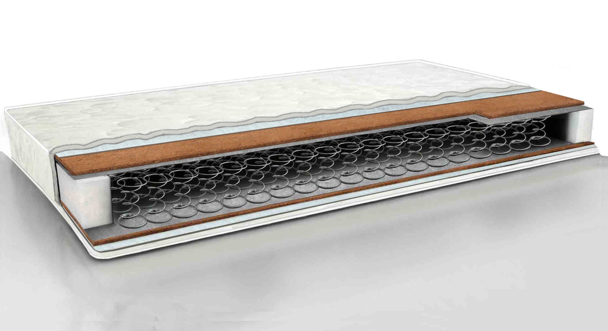 Двусторонний средне-жесткий матрас на основе блока двуконусных пружин «Bonnel», который хорошо держит форму, придает матрасу упругость и противостоит проседанию.