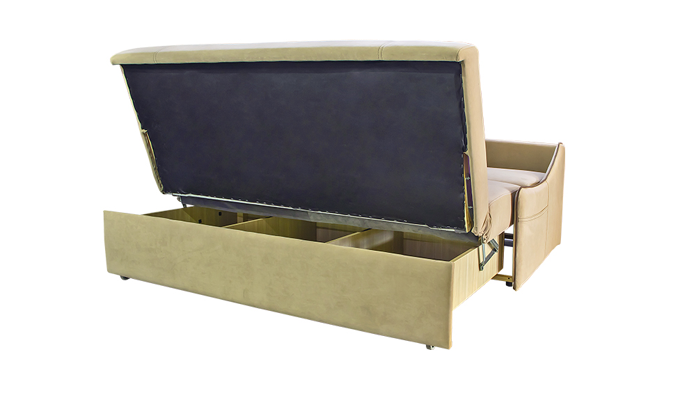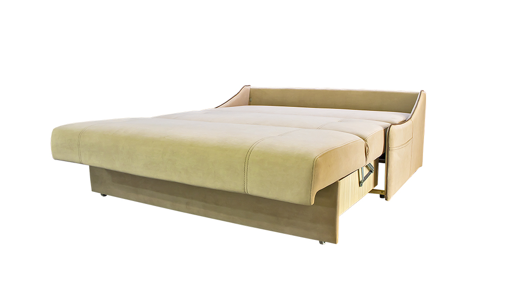 Сити-140 – это стильный и современный раскладной диван, который станет отличным вариантом даже для самого малогабаритного помещения. Карманы по бокам изделия являются хоть и небольшим, но дополнительным местом для хранения.Механизм трансформации типа «Аккордеон», спальное место которого, состоит из трех частей, одна из которых в собранном состоянии служит сидением, а две остальные – складываются в спинку. При трансформации сидение поднимают до щелчка и выдвигают вперед до упора. Параллельно с этим в движение приходит и спинка, раскладываясь в одну плоскость с сидением.