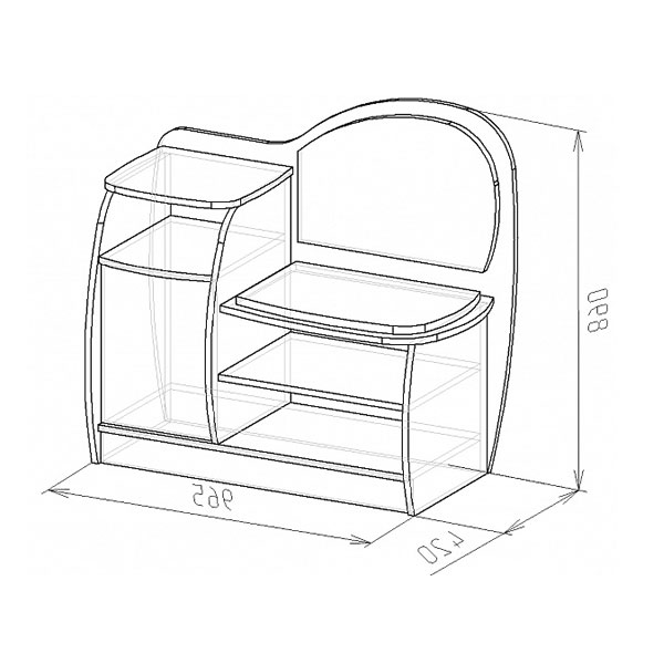 - Небольшая, но функциональная модель, оснащенная полками и нишей за дверцей.