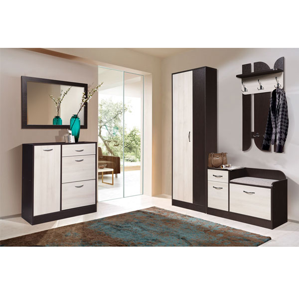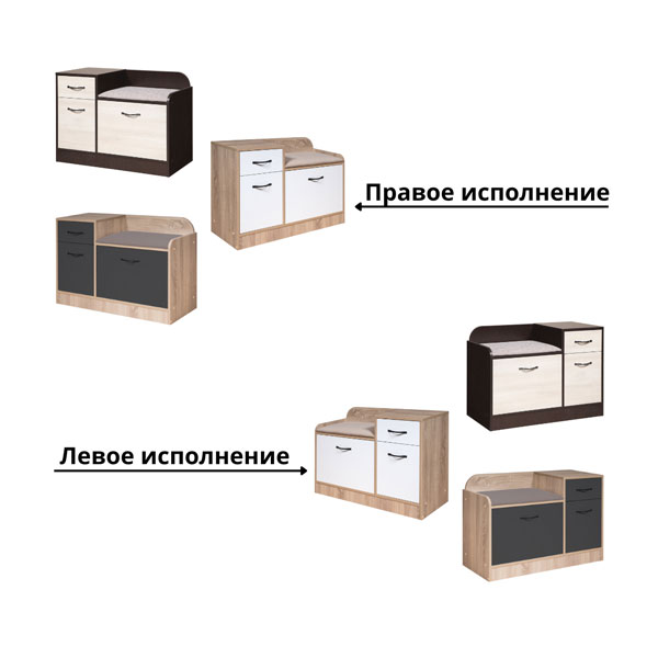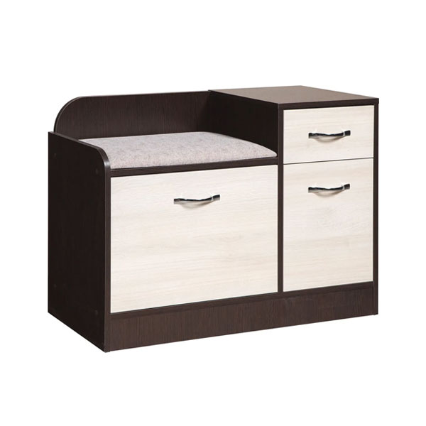- Скамья небольшая, но функциональная. За откидной дверью находится место для хранения обуви, укомплектованное полкой.