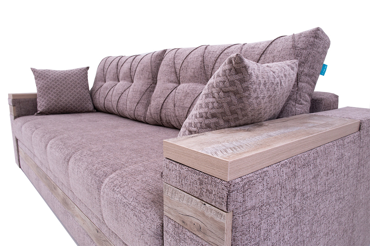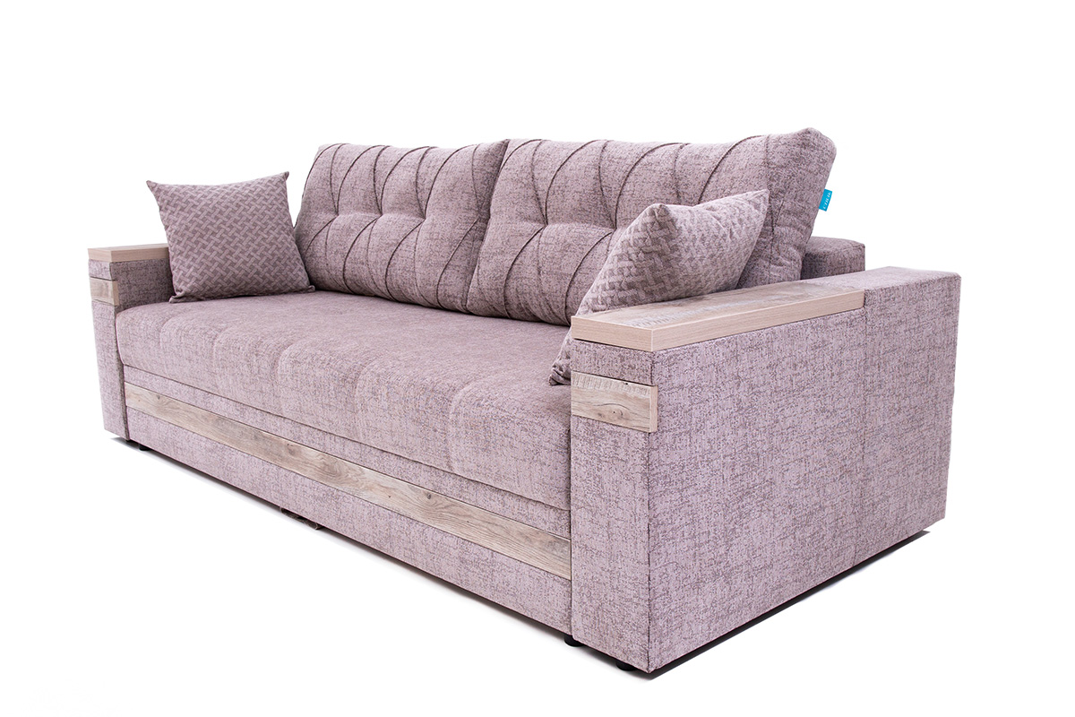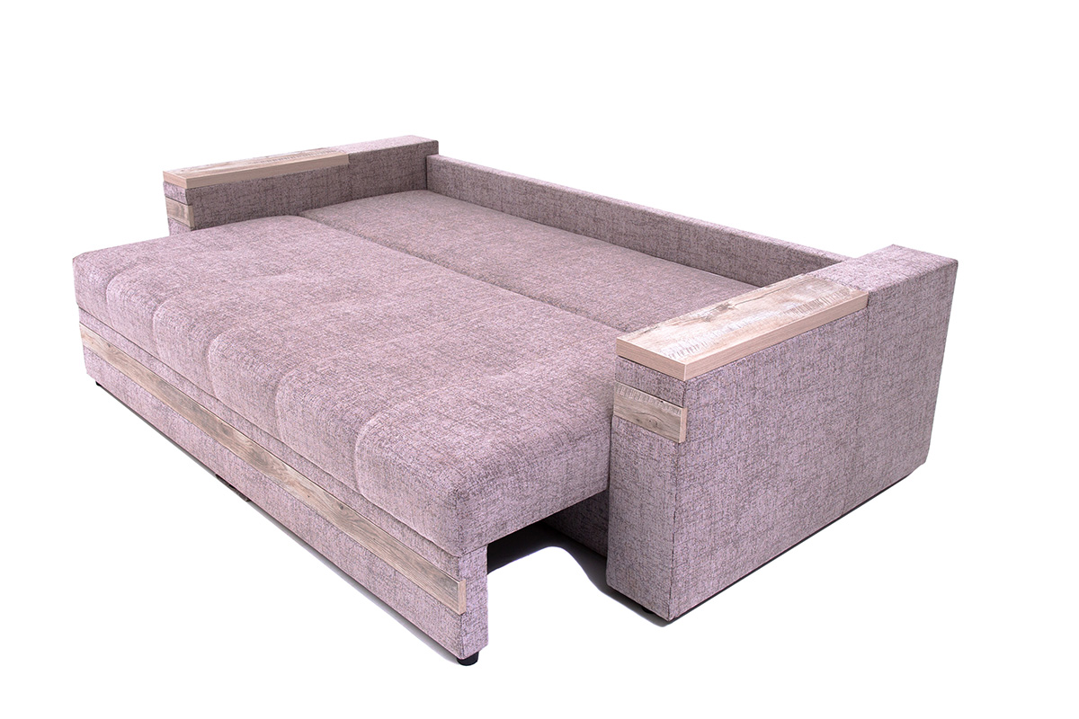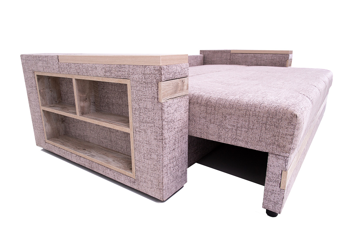 Диван-кровать Руслана-1 — современная, удобная, простая модель. В разложенном виде представляет удобную 2-х спальную кровать. Сидение и спинка на основе независимого пружинного блока. Имеется емкость для постельных принадлежностей. В одной из боковин располагается декоративная полочка. В другой боковине – минибар, который открывается при помощи верхней декоративной накладки.В комплект входят 2 подушки спинки. Может изготавливаться в разных цветовых решениях. Механизм трансформации — «еврокнига».