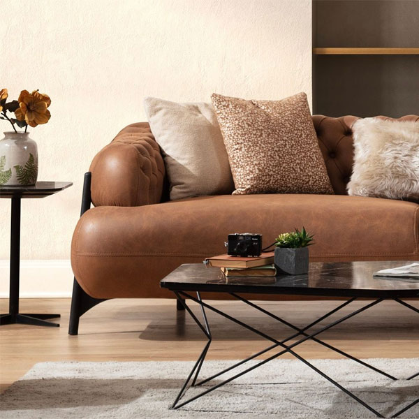 - Стильный трехместный диван Ares S Ginger на металлическом каркасе в коричневой, обивке алькантара.