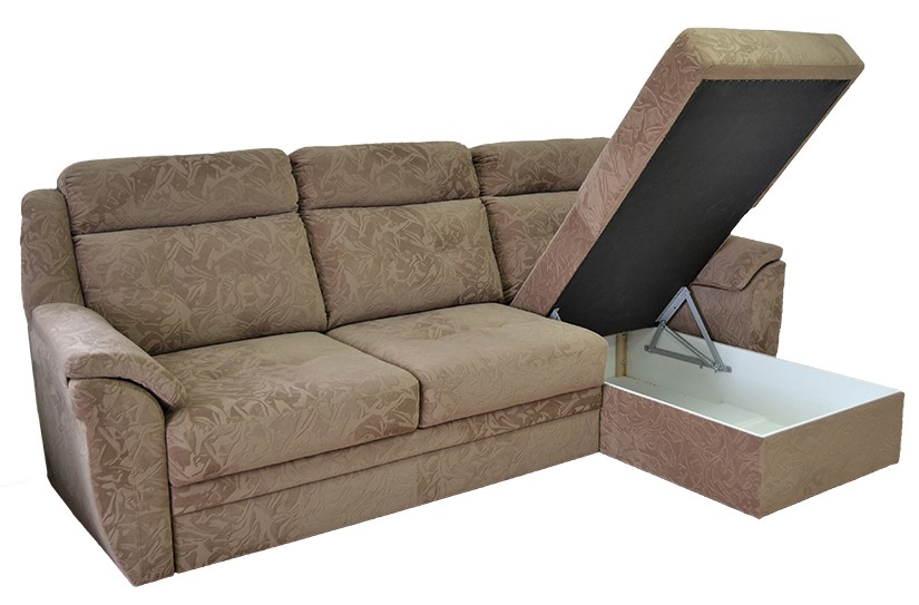 -В угловой части дивана есть большая ниша для белья, куда можно убрать подушки и пледы.