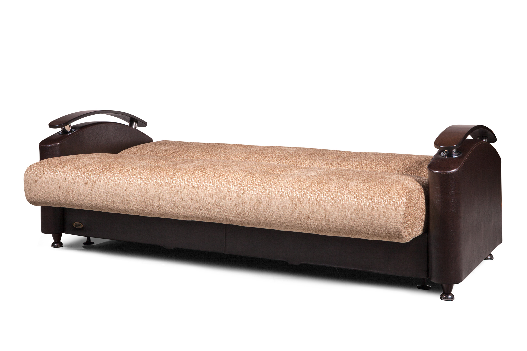 Мягкий элемент сидений дивана-кровати и кресел выполнен с использованием пружинного блока «Боннель», что гарантирует сохранение формы после длительной эксплуатации.