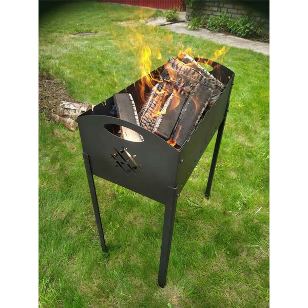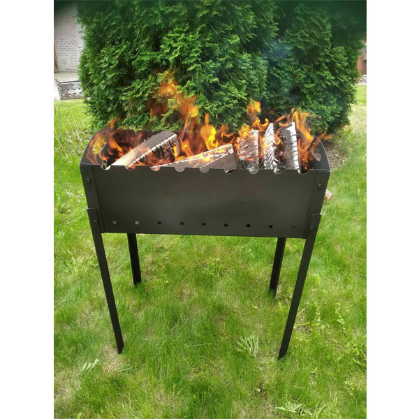 - Вес изделия обеспечивает устойчивость на ровном огнестойком основании и позволяет при необходимости переставить мангал в другое место.