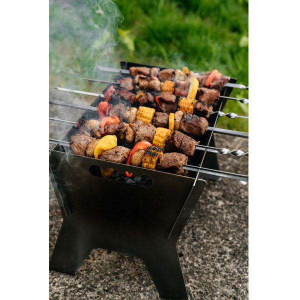 - Мангал сборный Оптимал» BB048 — компактный металлический мангал для готовки на углях на даче и в парке.